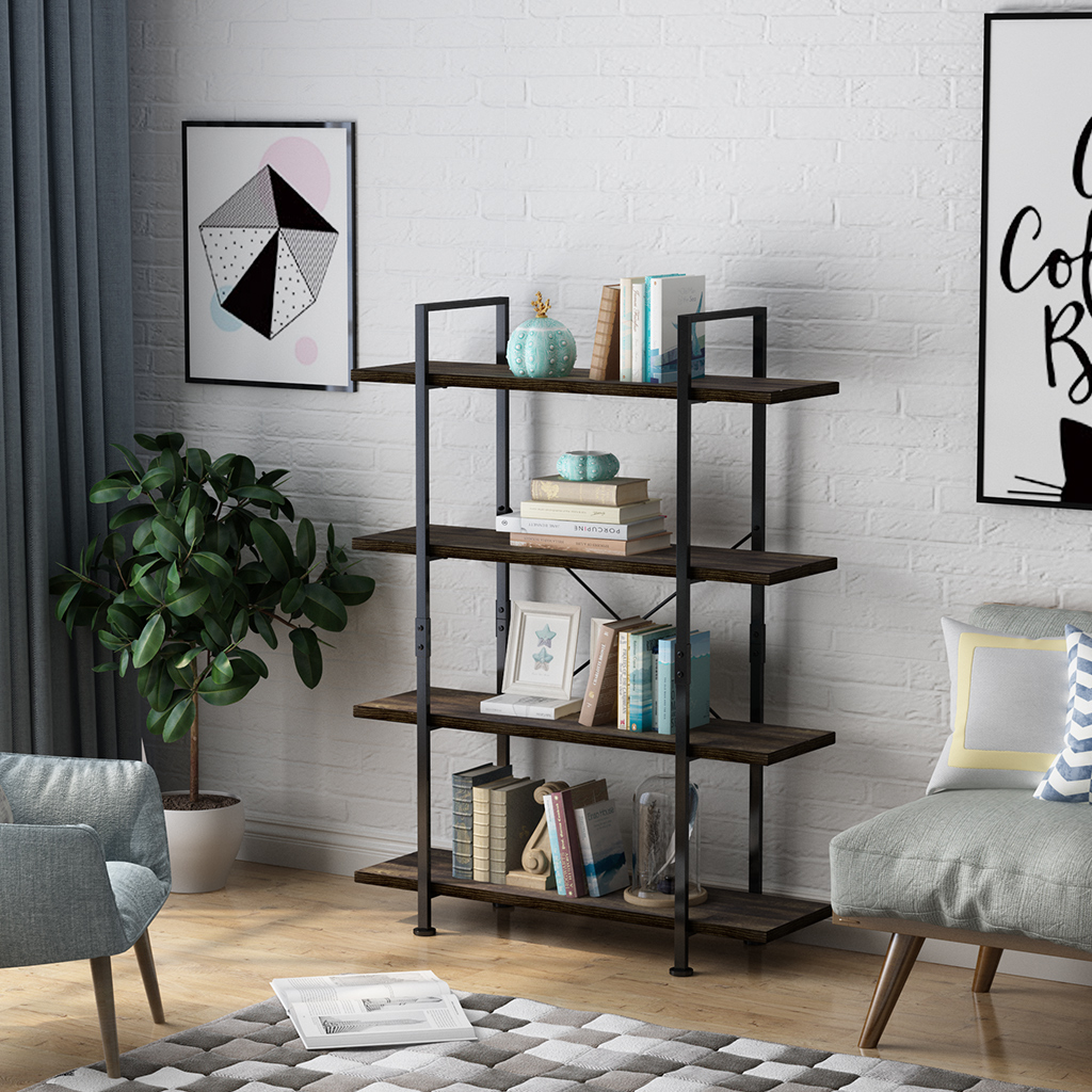 4 Tier Open Back Storage Bookshelf, Industrial 54.3 inches ...